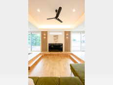 暖炉と木の温もりに包まれる、ダウンフロアの家