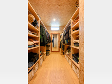 壁一面に設けた壁面収納は、日用品から趣味のアイテムまでたっぷり収納可能。