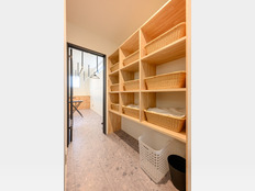 ランドリールームを一直線に配置し、「洗う・干す・しまう」がスムーズに行える効率的な家事動線を実現。